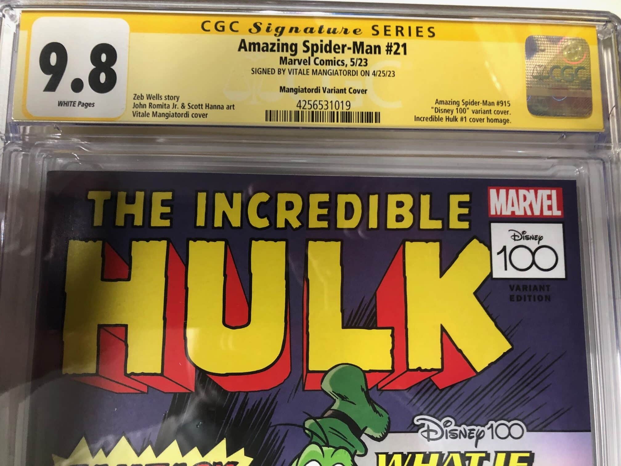 la prestigiosa SIGNATURE SERIES della CGC per Amazing Spider-Man #21 (2023) con copertina variant Disney 100 anni disegnata e autografata da Vitale Mangiatordi