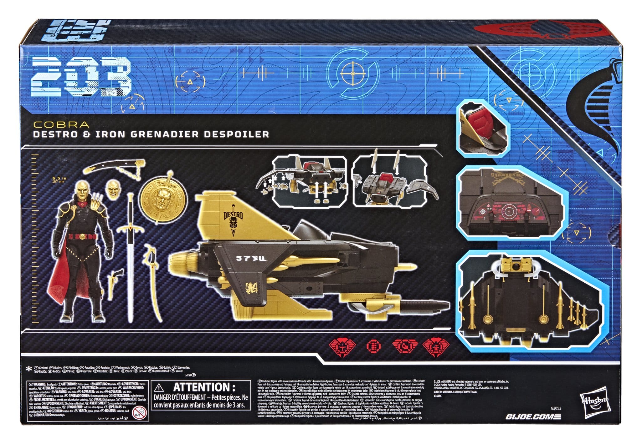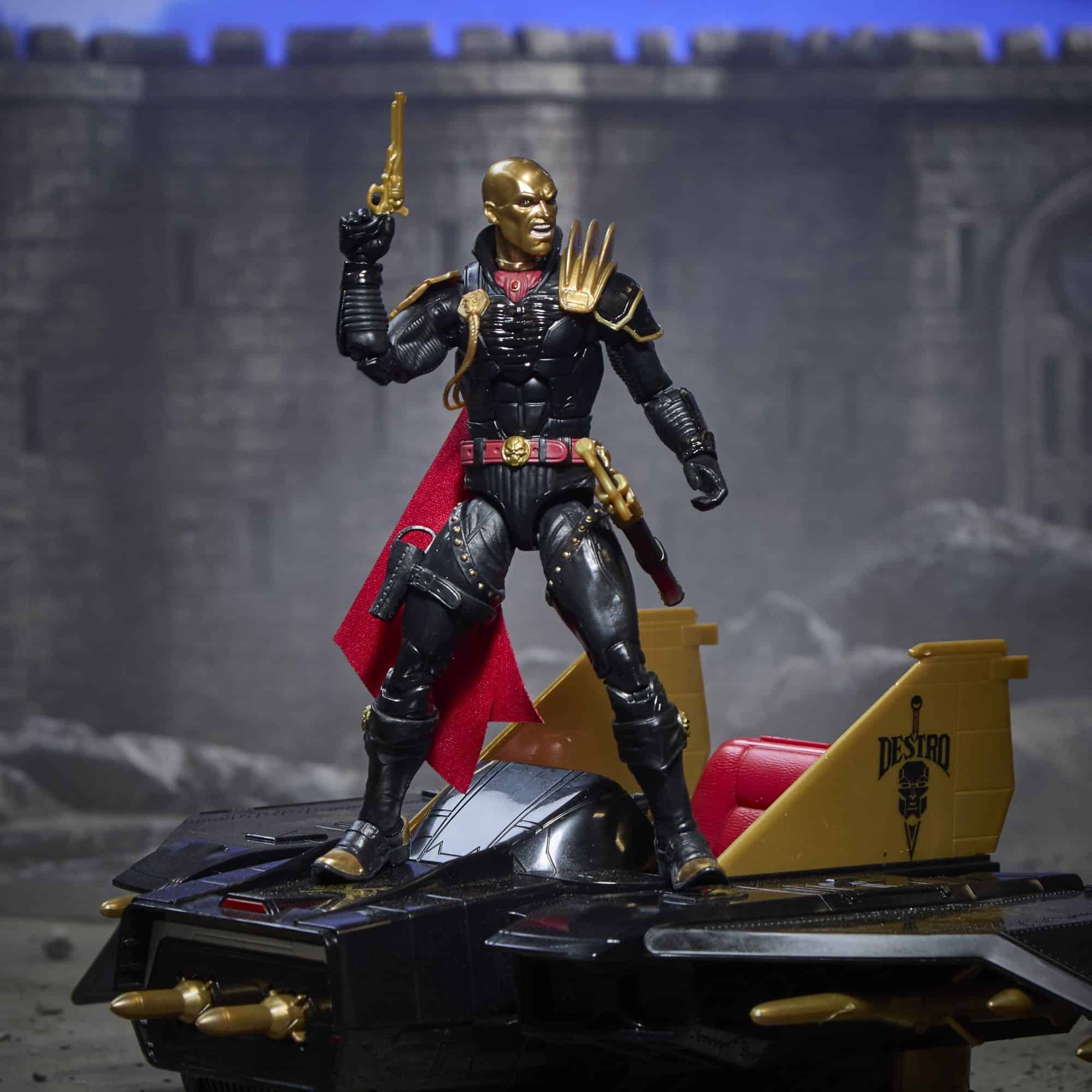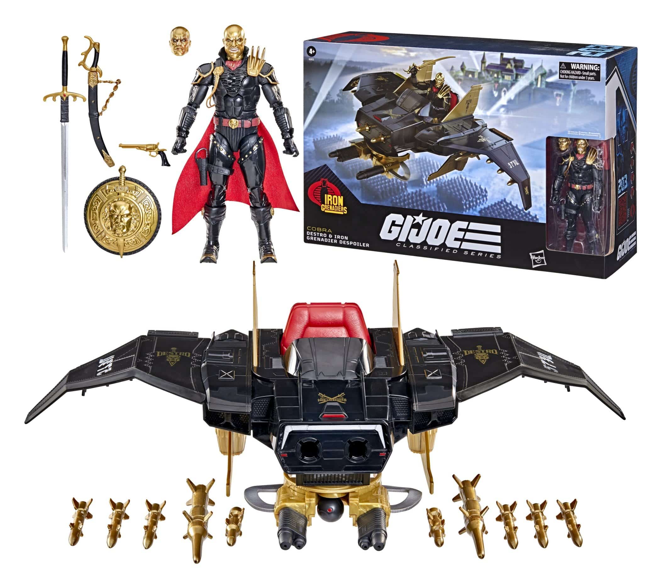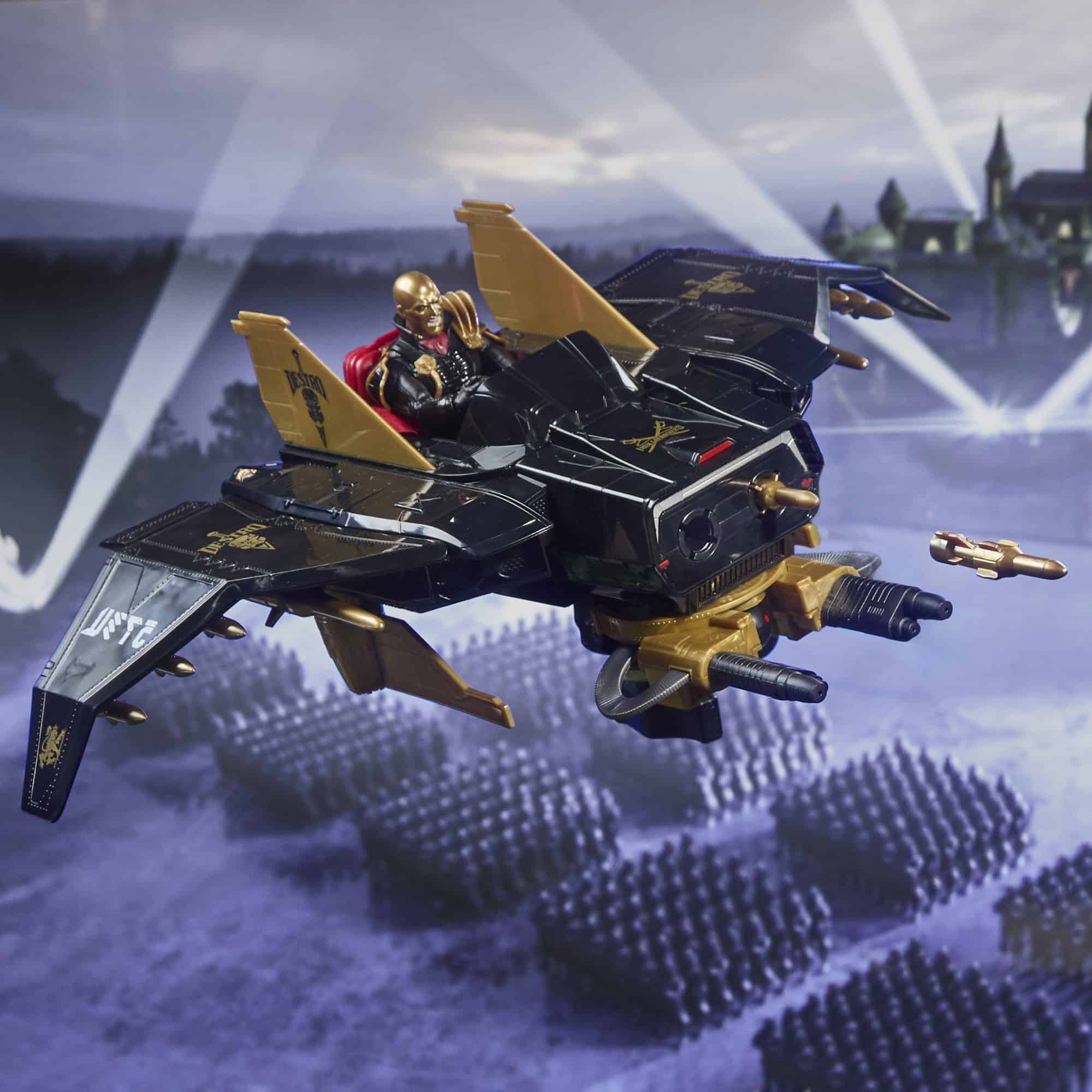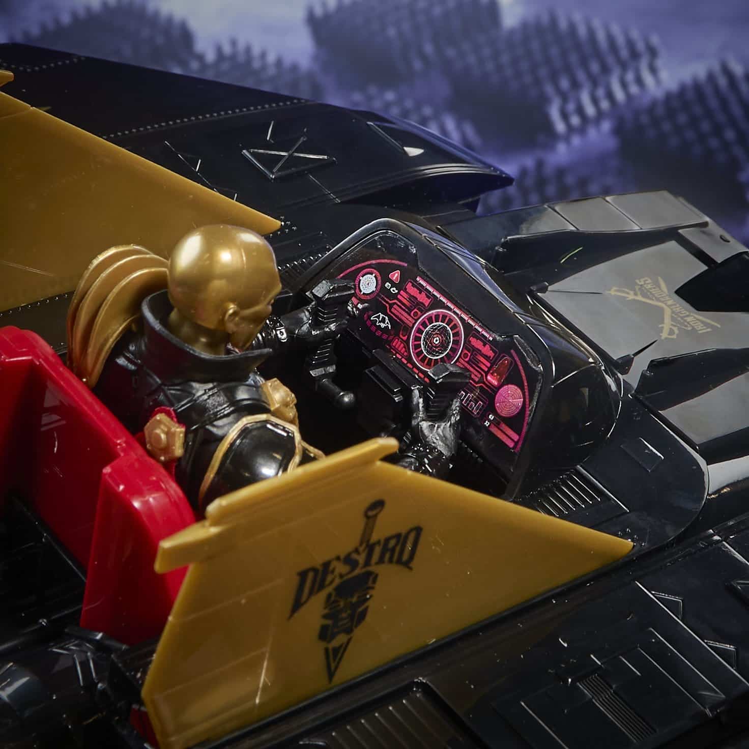 Destro è un brillante produttore di armi e leader dei Granatieri di Ferro, noto per il suo genio tattico e l’iconica maschera di metallo. Il veicolo Despoiler è apparso originariamente nella linea Hasbro G.I.Joe a real American hero nel 1988. Questo veicolo è stato introdotto come nave d’assalto aereo personale di Destro. Hasbro lo sta ora riportando in vita per aiutare a mostrare Destoro come una figura dominante e la sua presenza mortale sul campo di battaglia.